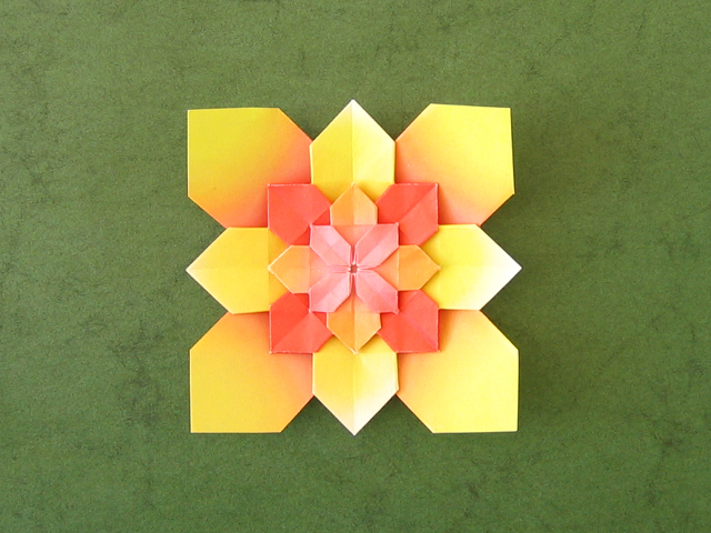 Paper: 15cm square of kami, pattern "dreamy paper" yellow/red