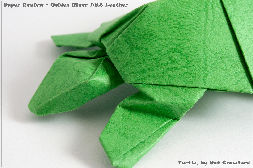 Golden River is a great choice for simple folds. I made the six units without any problem. Puffing the petals showed this paper has a lot of tension and can be stretched without crumpling. The weakness on the veins of the leather texture are a minor weakness: if a crease runs just along it, it may be hard to place the crease correctly, rather than on the vein. Assembly is fun. The tabs are stiff, and the final model is highly stable.